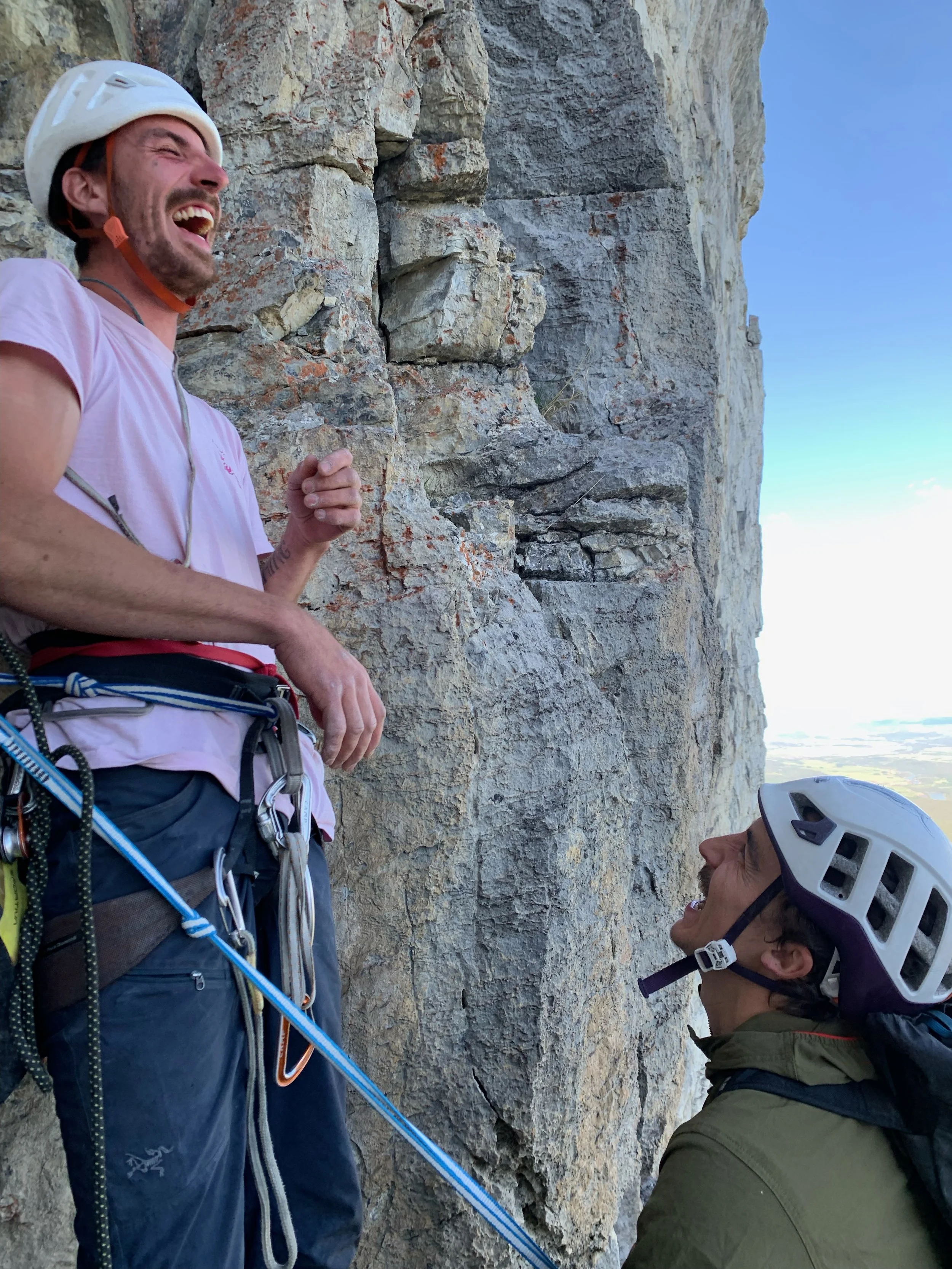 With the laughter of relief, I pulled back on and gave it another go—but the section felt exponentially harder after the fall. Still, this was the kind of climbing I live for. Trying hard, high off the ground, feeling like a small speck on a vast expanse of rock. All the while tied to good company in ridiculously exposed settings.